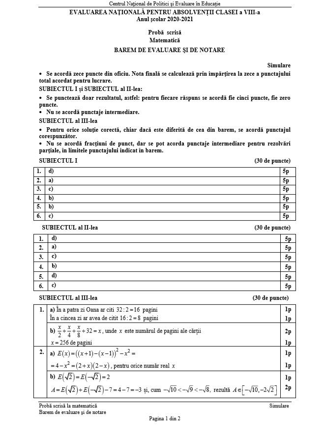 Barem Simulare Evaluare Nationala 2021 / Bareme Si Subiecte Simulare Evaluare NaÅ£ionalÄ 2018 Clasa A Viii A Proba De RomanÄ Publicate De Minister Alba24